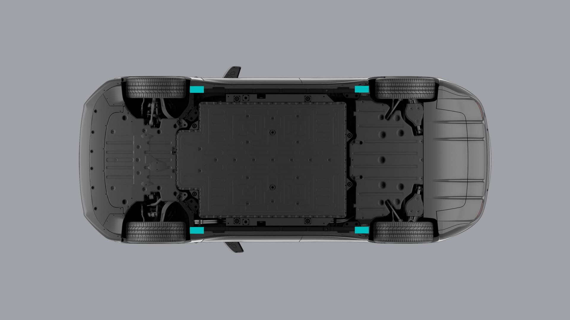 Wasser vermischtes Schaumlöschmittel (empfohlen wird F-500 EA), um die Hochvoltbatterie zu kühlen.