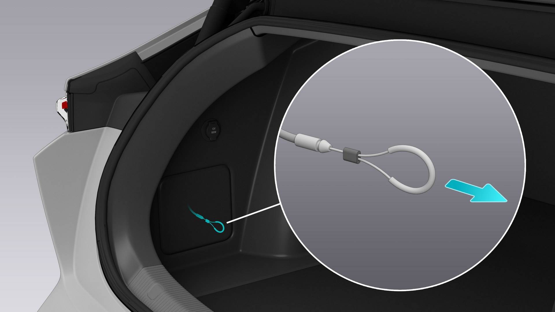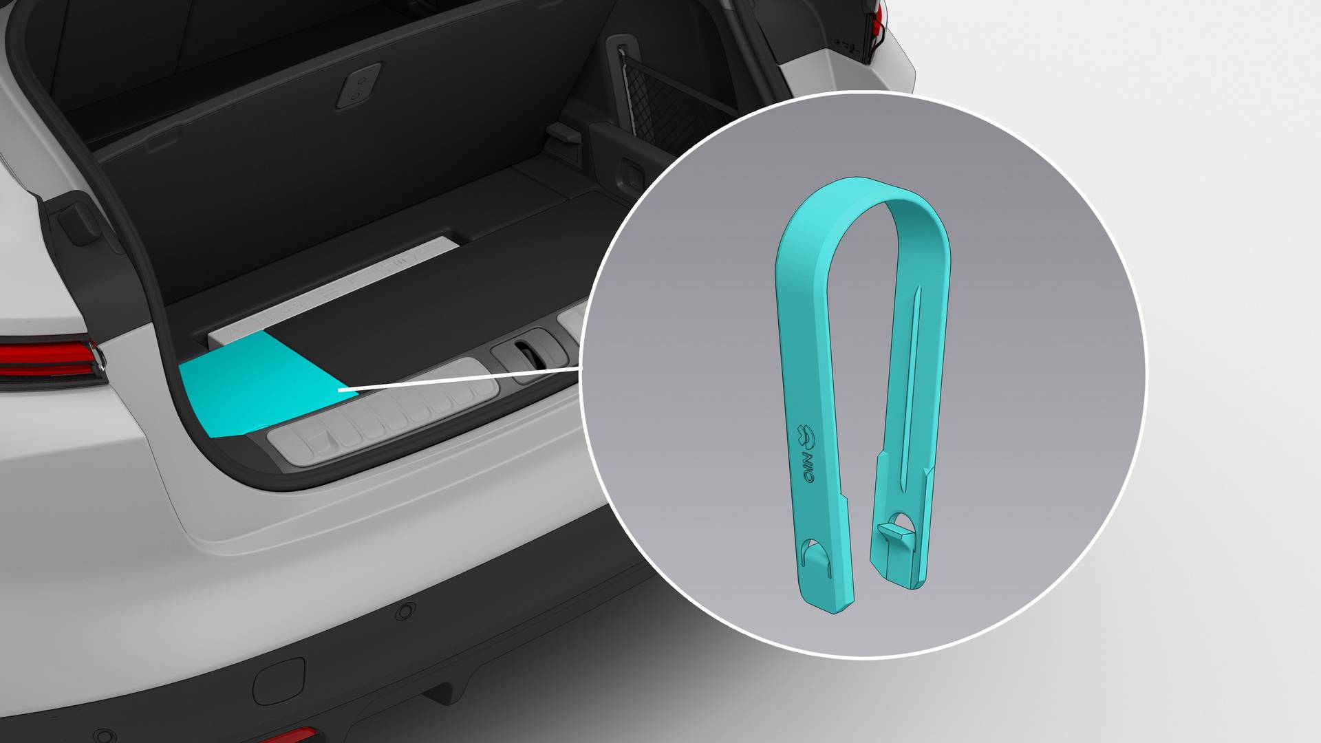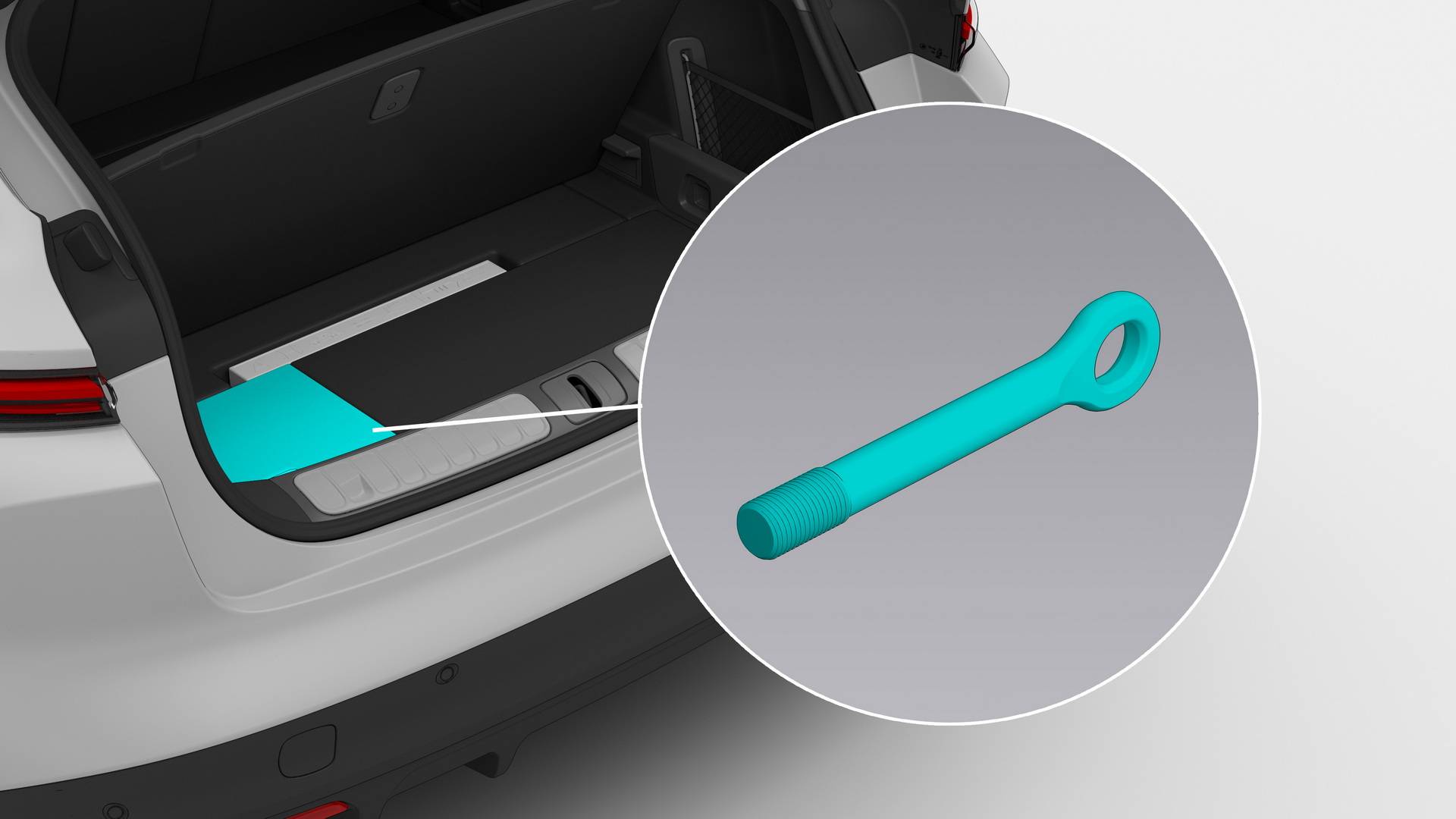 Nehmen Sie die Abschleppöse aus dem Notfall-Kit im Kofferraum.
