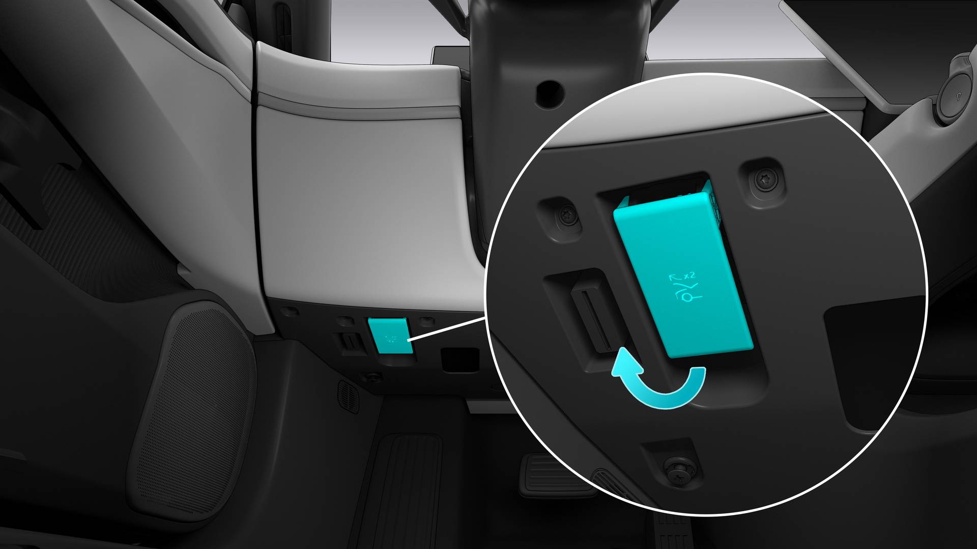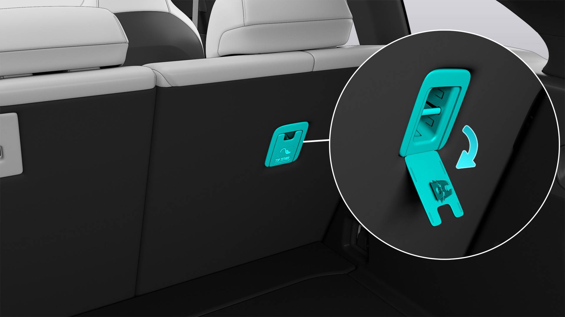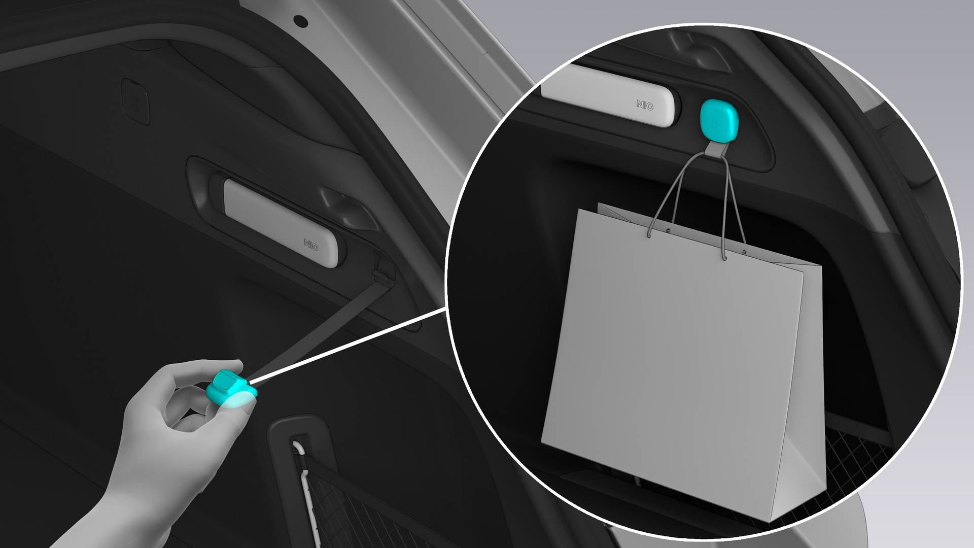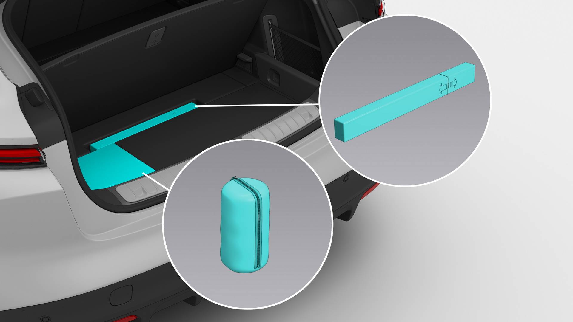 Nehmen Sie die Abschleppöse aus dem Notfall-Kit im Kofferraum.