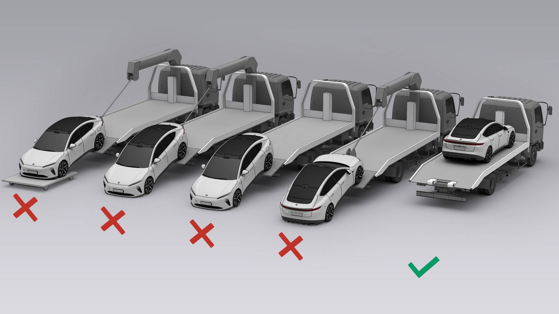 Plattform zum Transport des Fahrzeugs an. Abschleppen des Fahrzeugs: