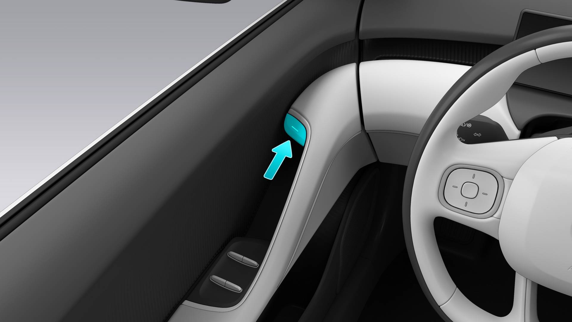 Drücken Sie das Bremspedal, während das Fahrzeug in Parkstellung ist, und öffnen Sie über