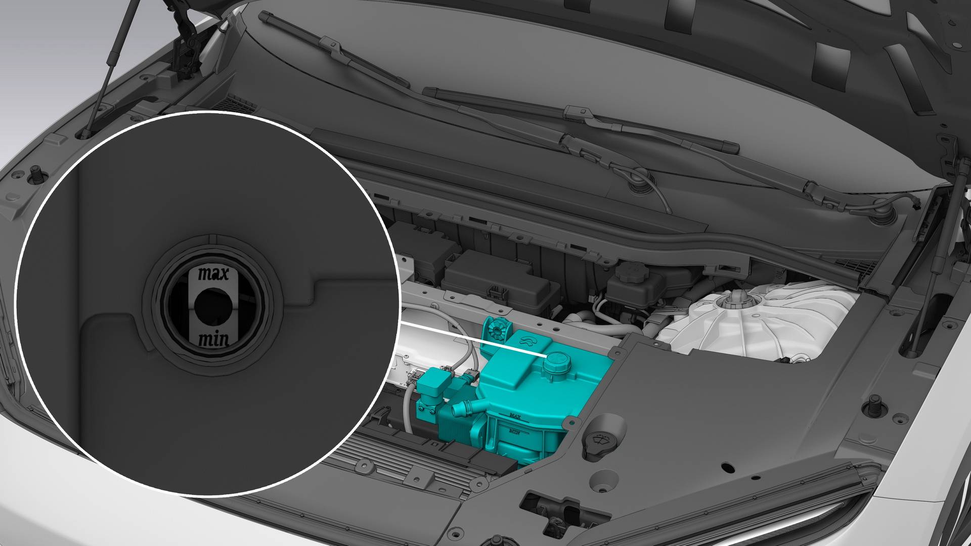 schalten Sie das Fahrzeug ab und beseitigen Sie Wasserrückstände im Fahrzeug. Überprüfen Sie das Fahrzeug