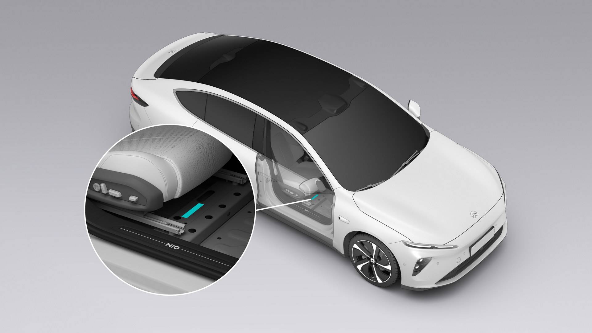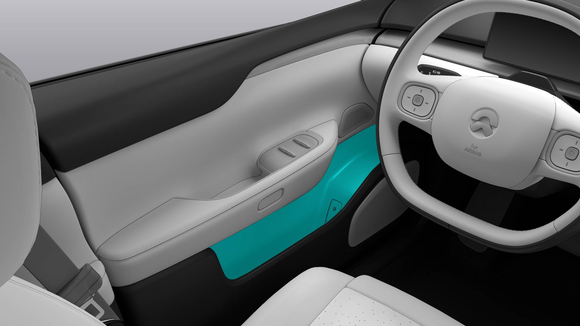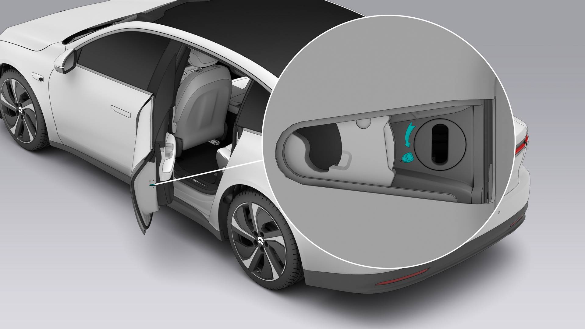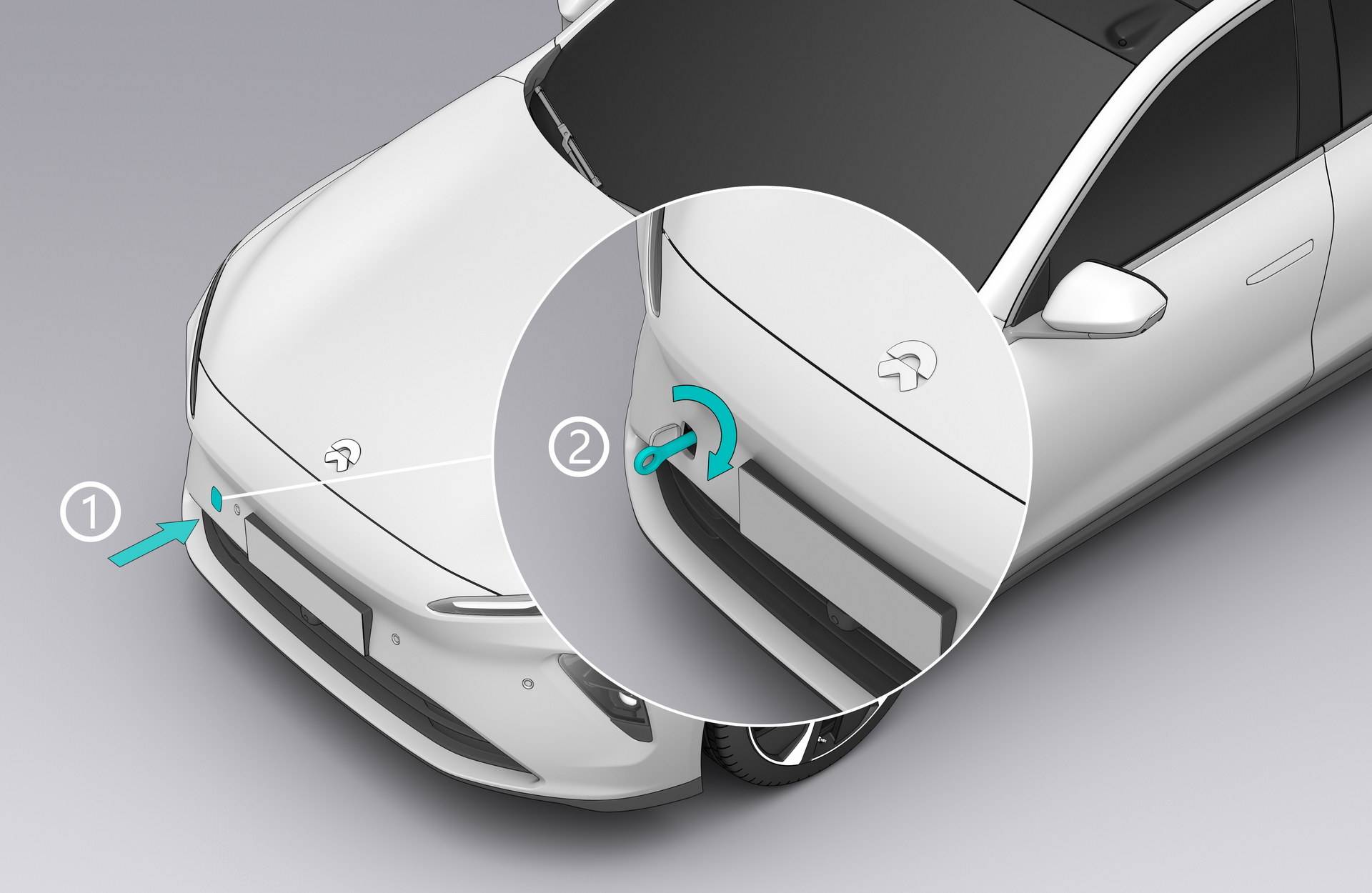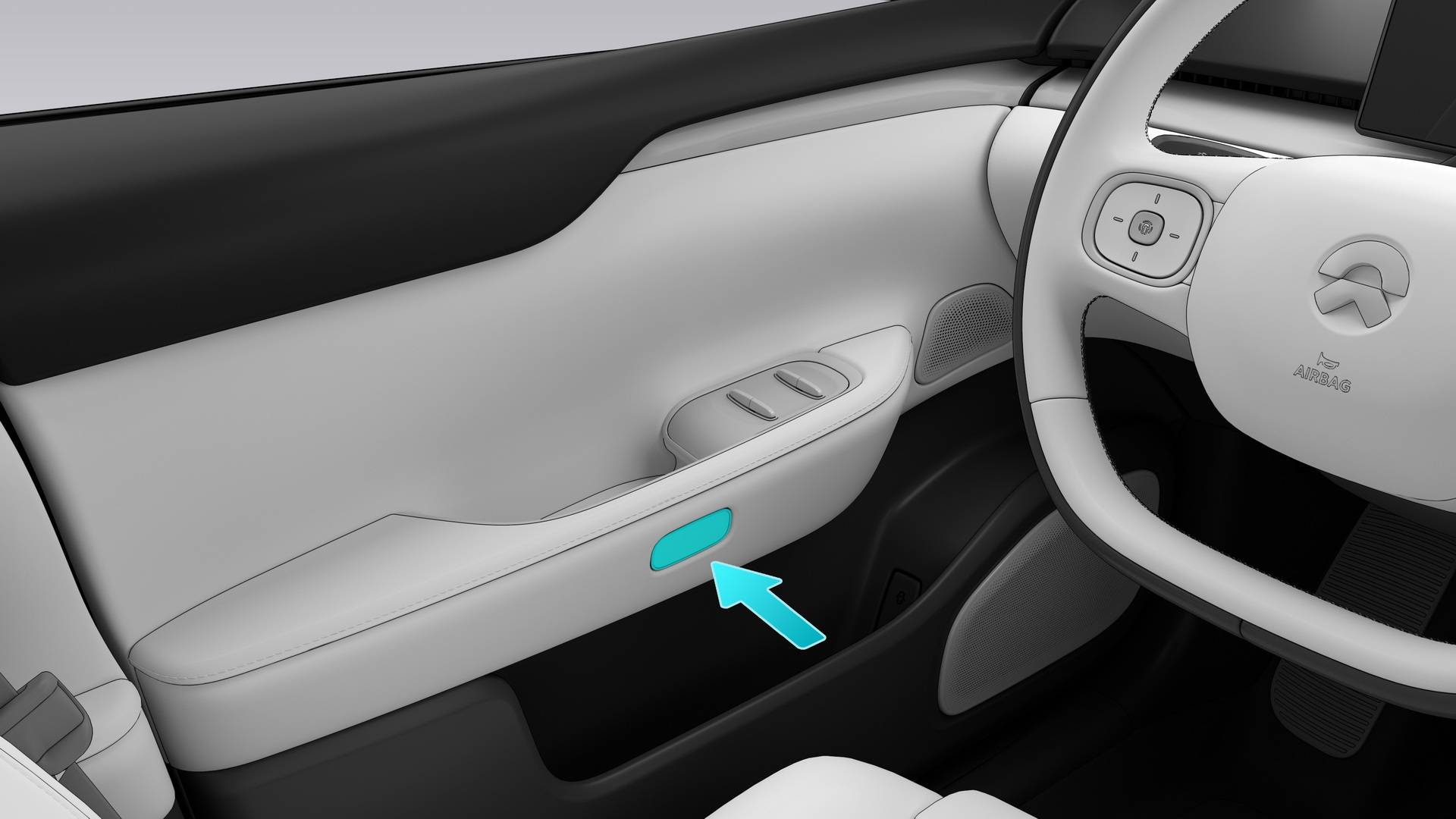 Wenn das Fahrzeug nicht mit den üblichen Methoden entriegelt werden kann (z. B. Smart Key-Fernbedienungen, Schlüsselloses Zugangssystem, NIO-App oder NFC), können Sie den Notschlüssel verwenden, um die Tür an der Fahrerseite aufzuschließen.