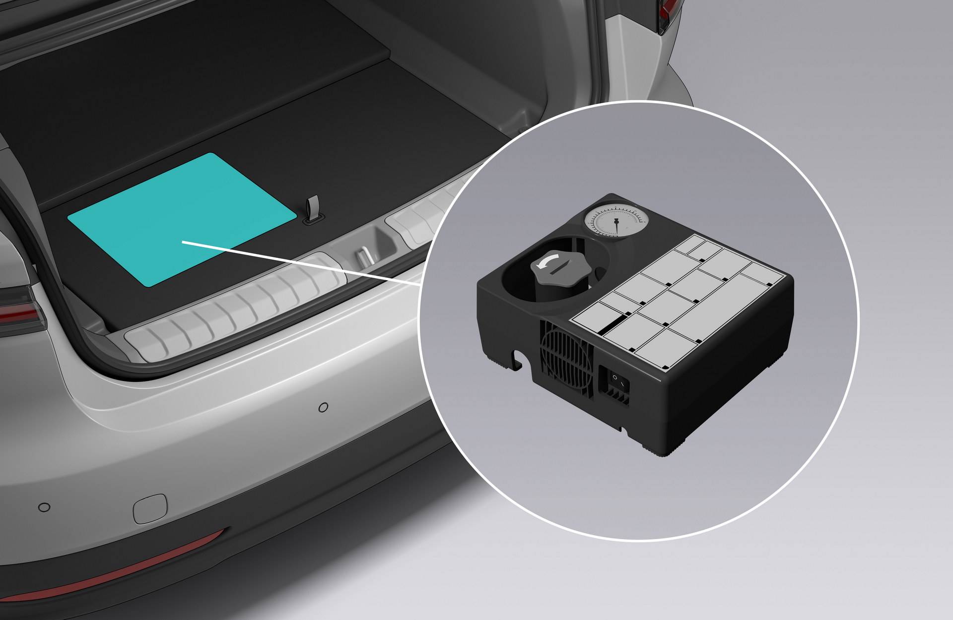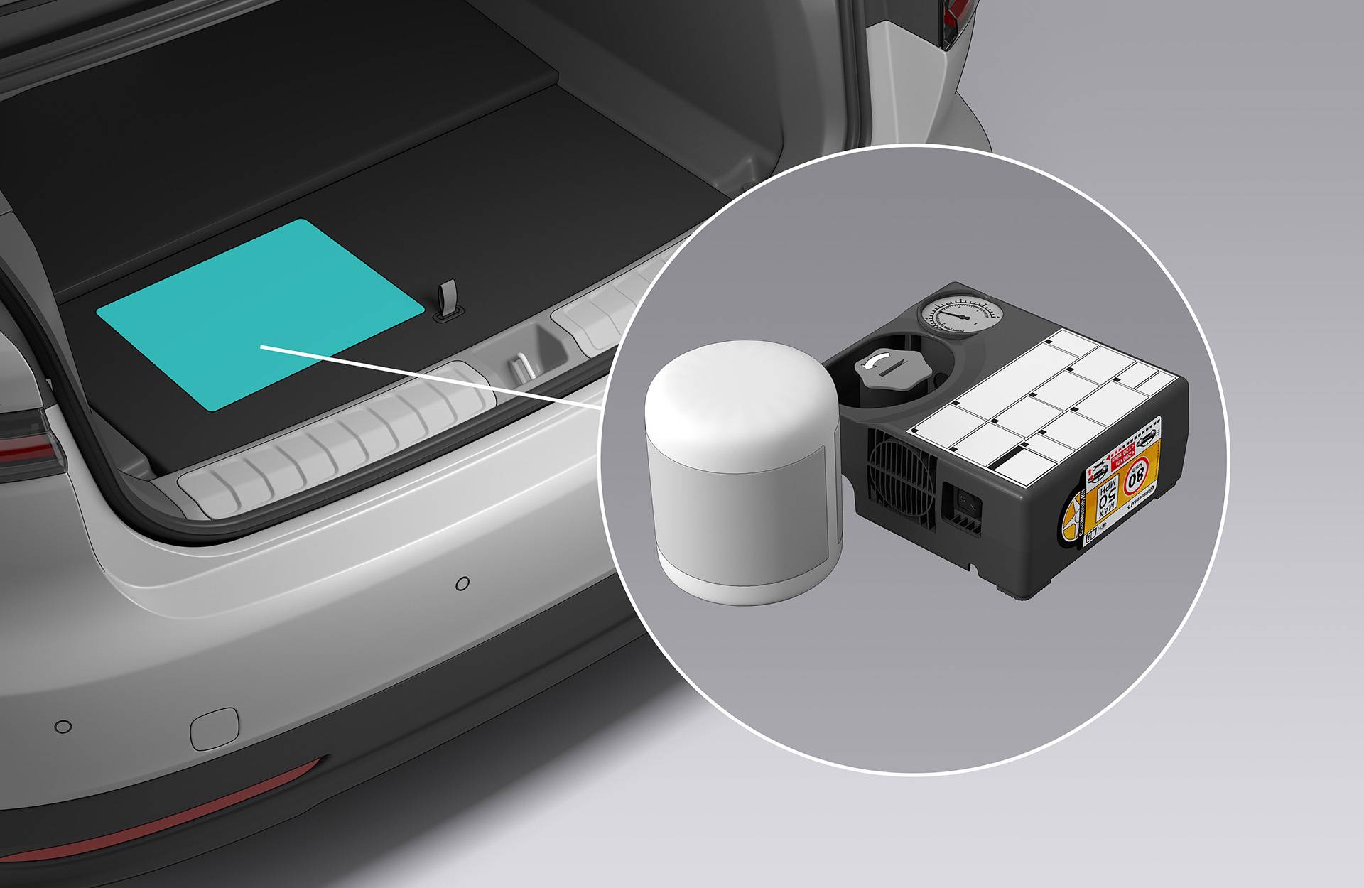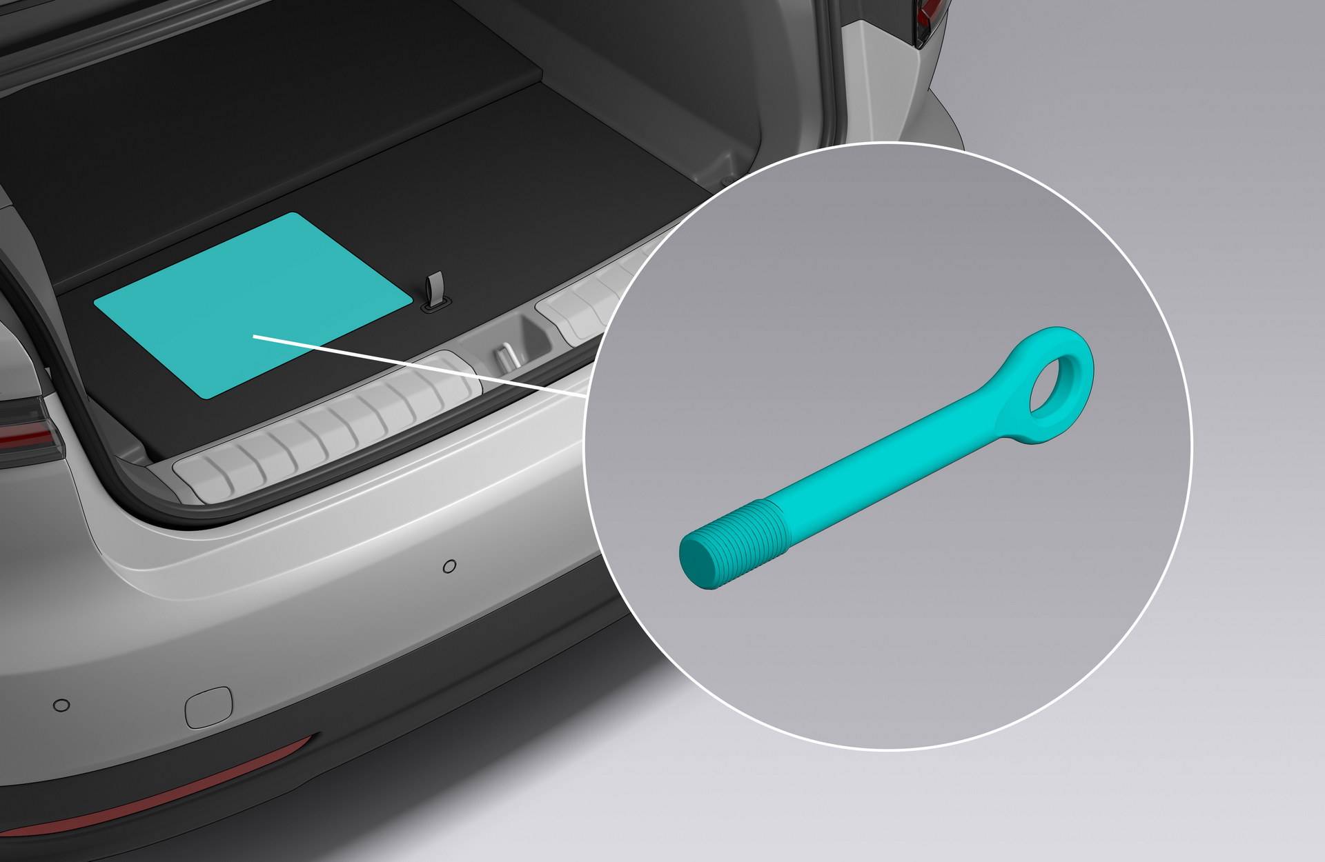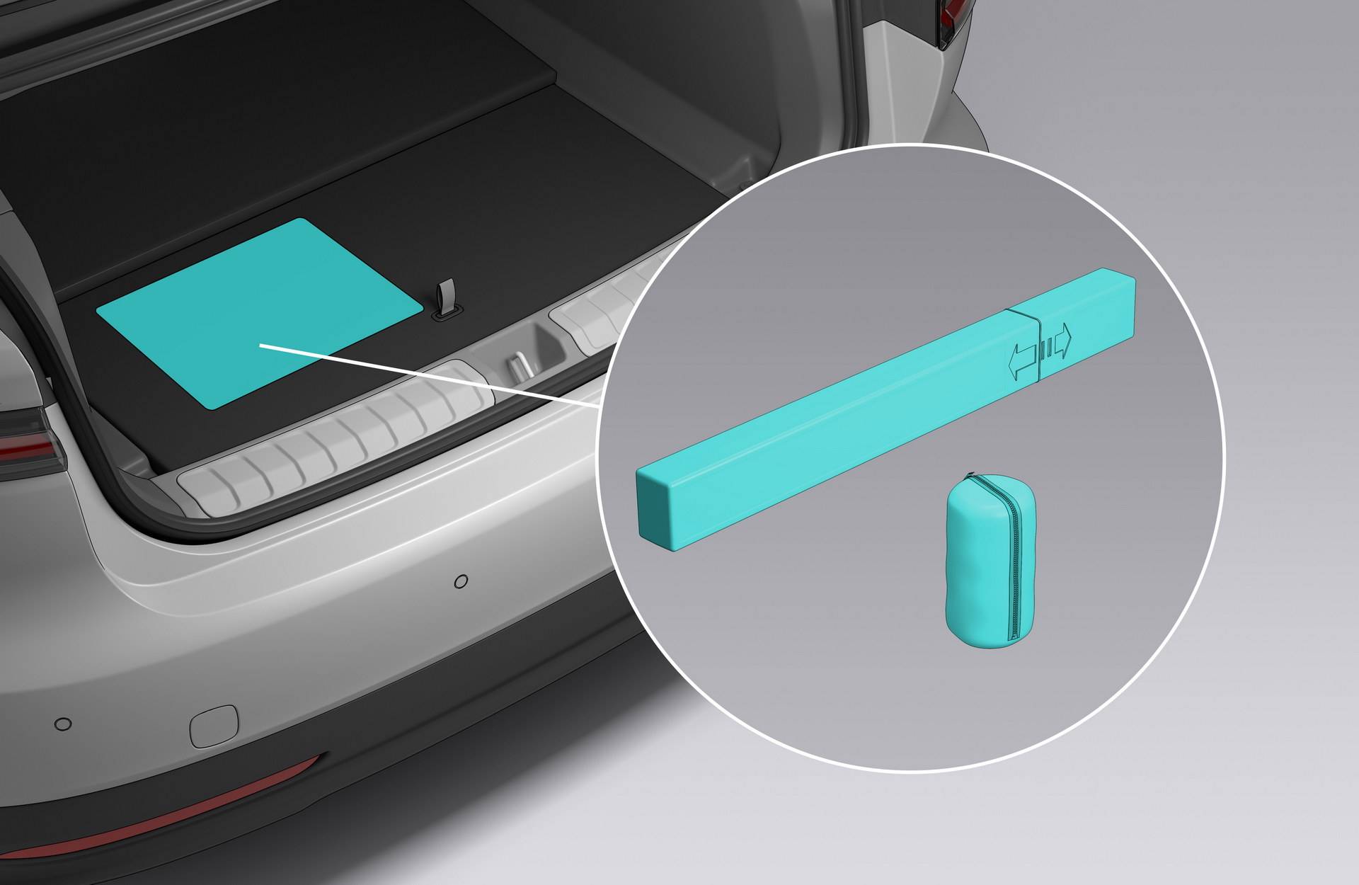 Nehmen Sie die Abschleppstange aus dem Notfallkoffer im Kofferraum.