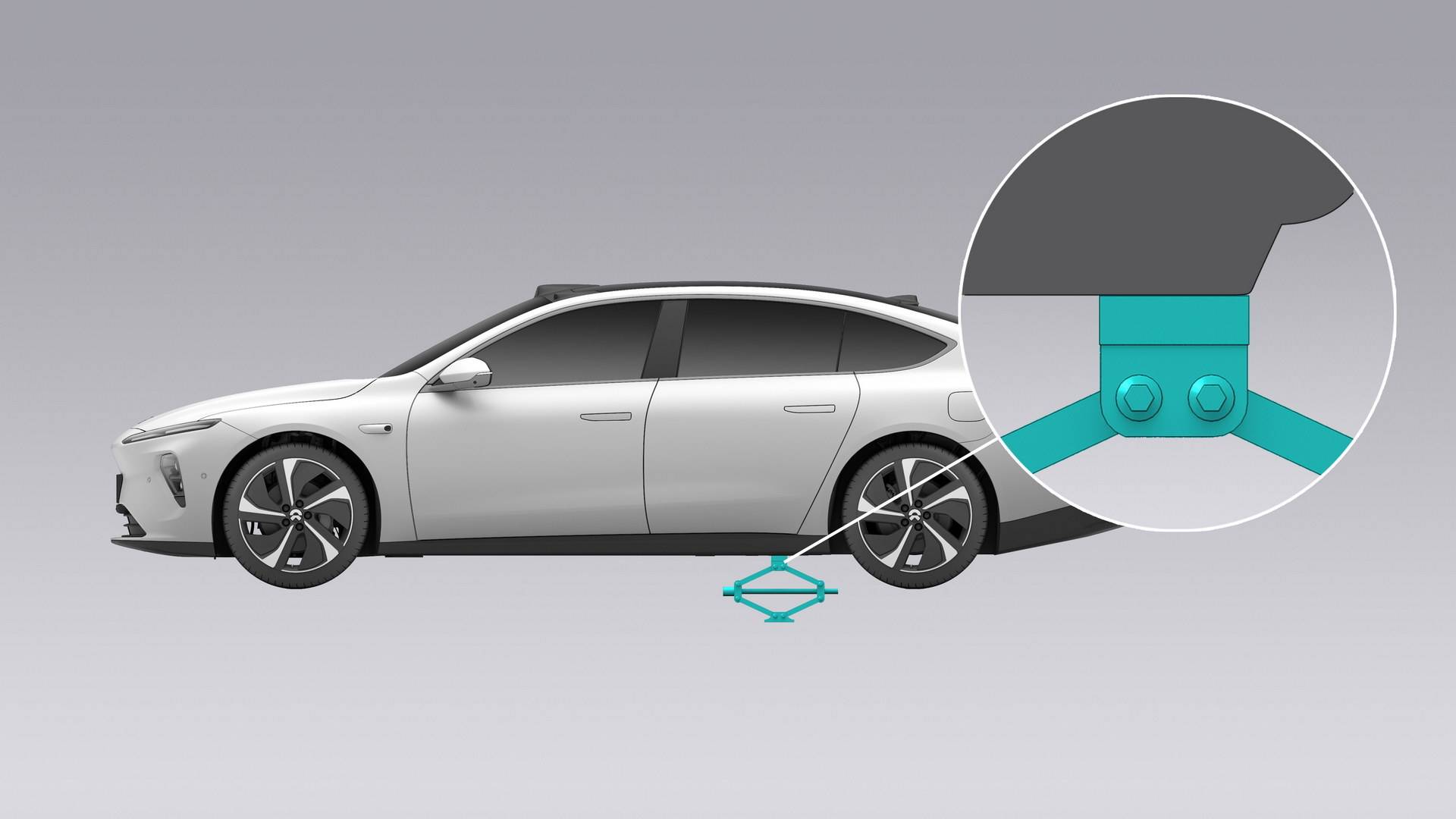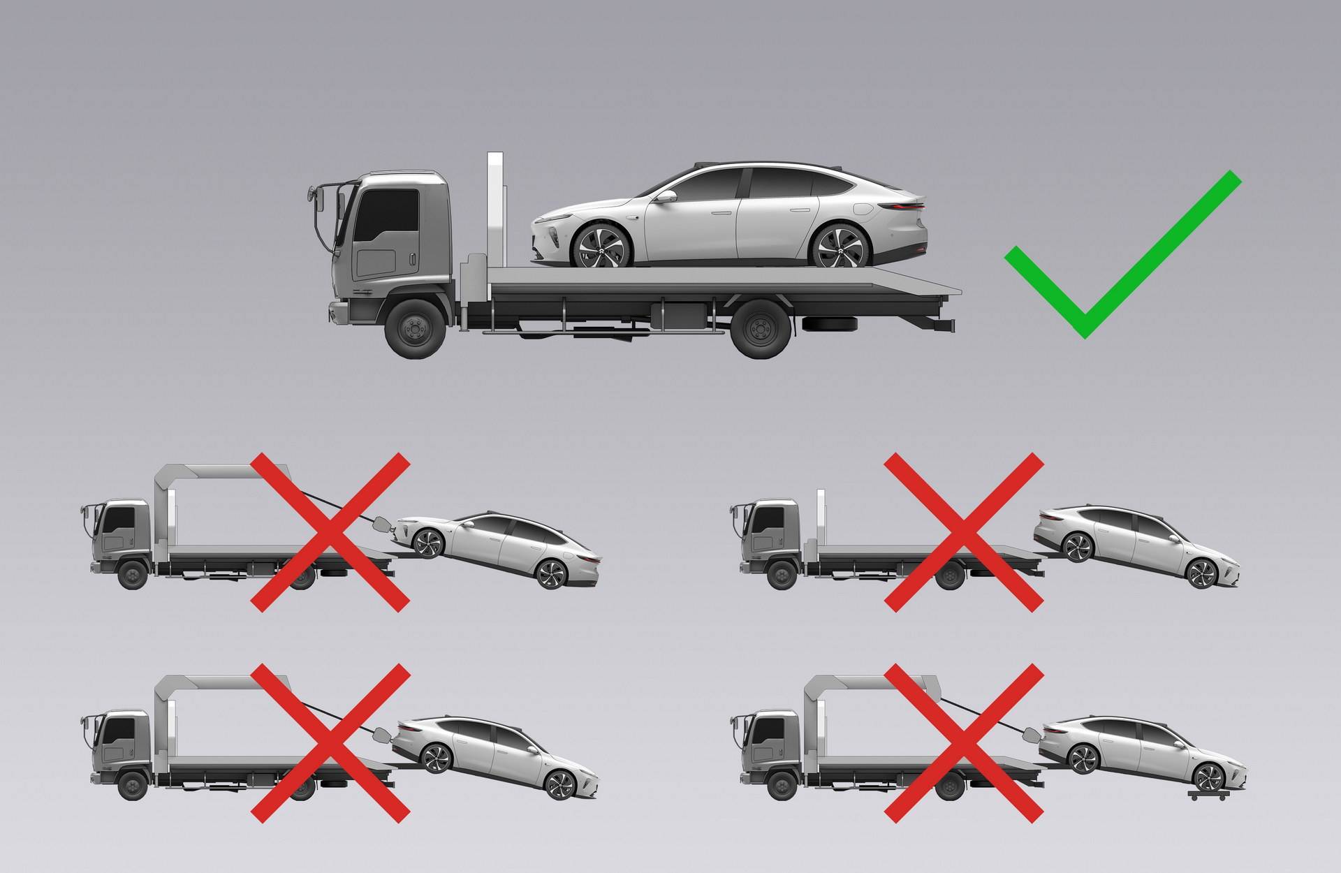 Schleppen Sie das Fahrzeug nicht am Abschlepphaken ab, wenn es in Schnee, Schlamm oder Sand festgefahren ist oder die Räder blockiert sind und sich nicht frei drehen lassen. Wenden Sie sich bitte an das NIO-Servicecenter.