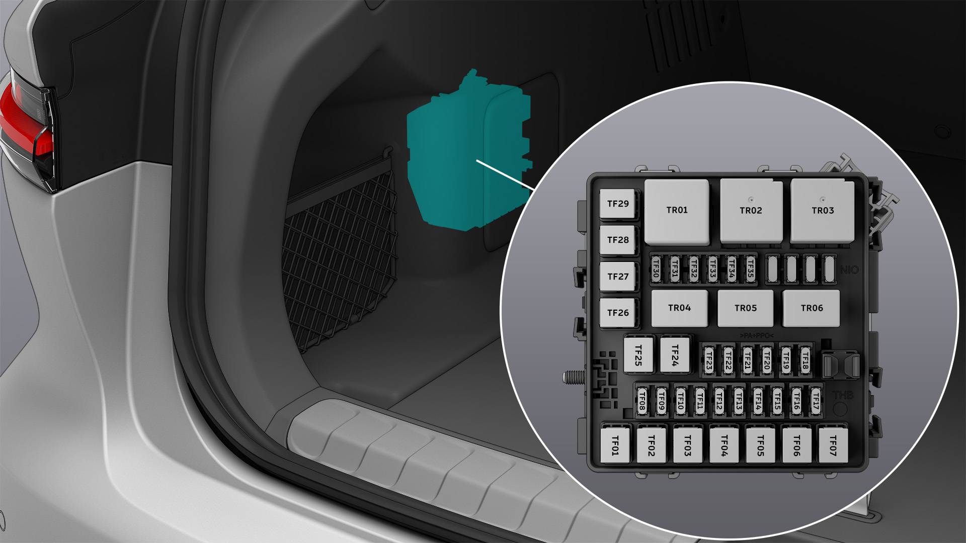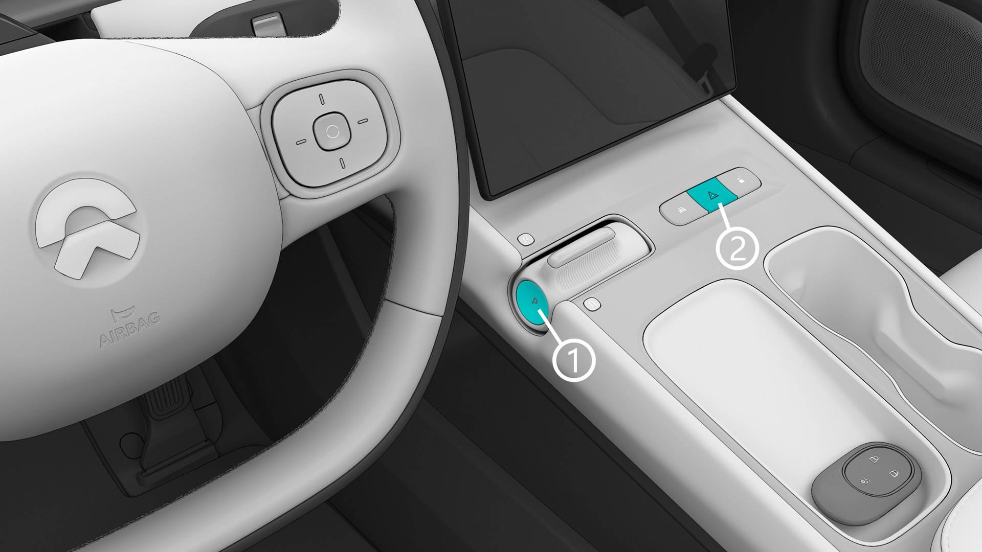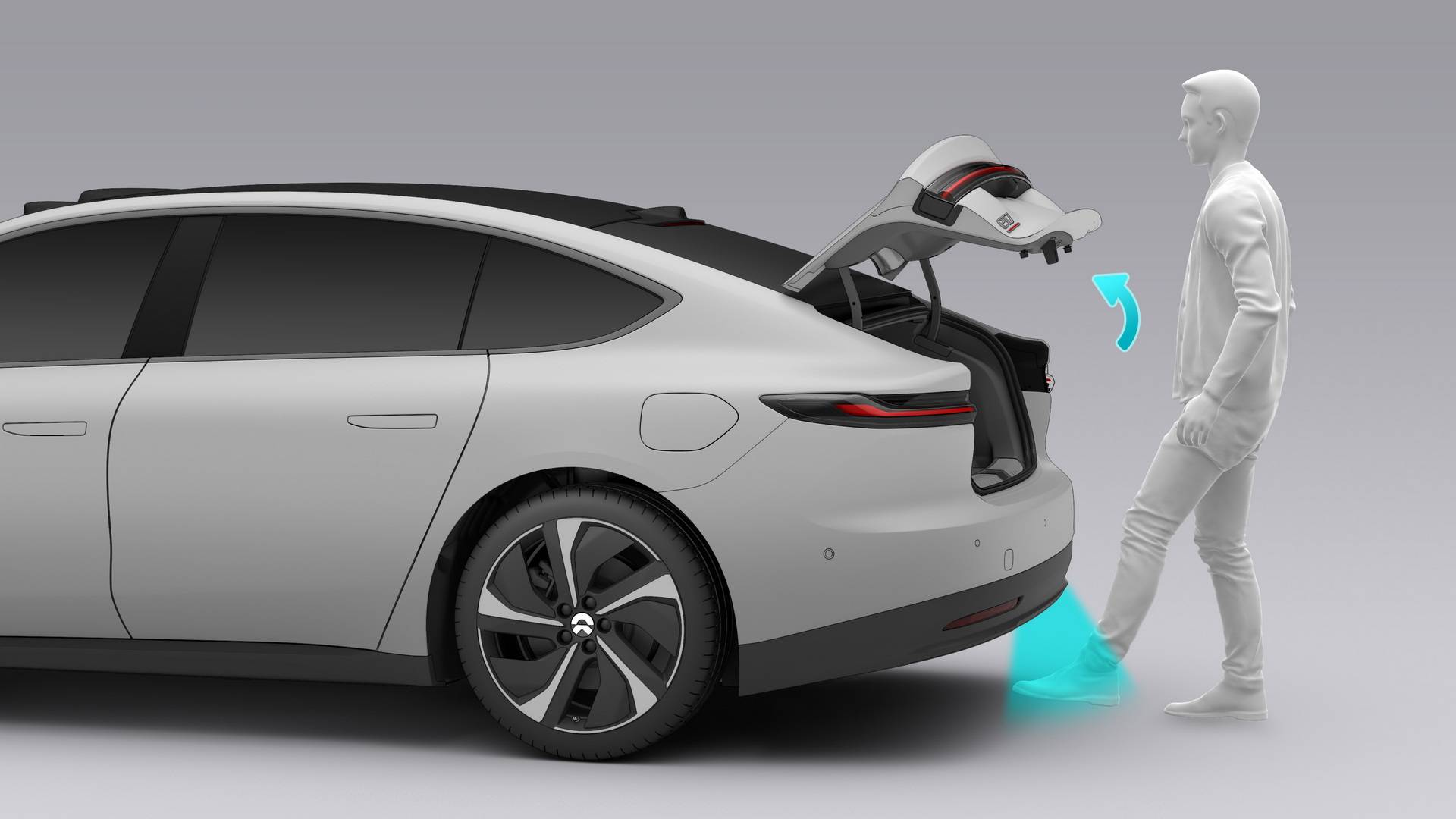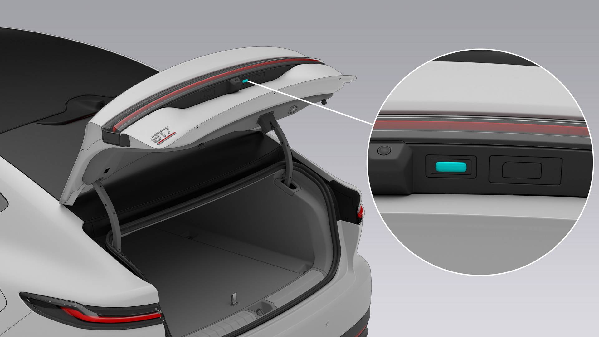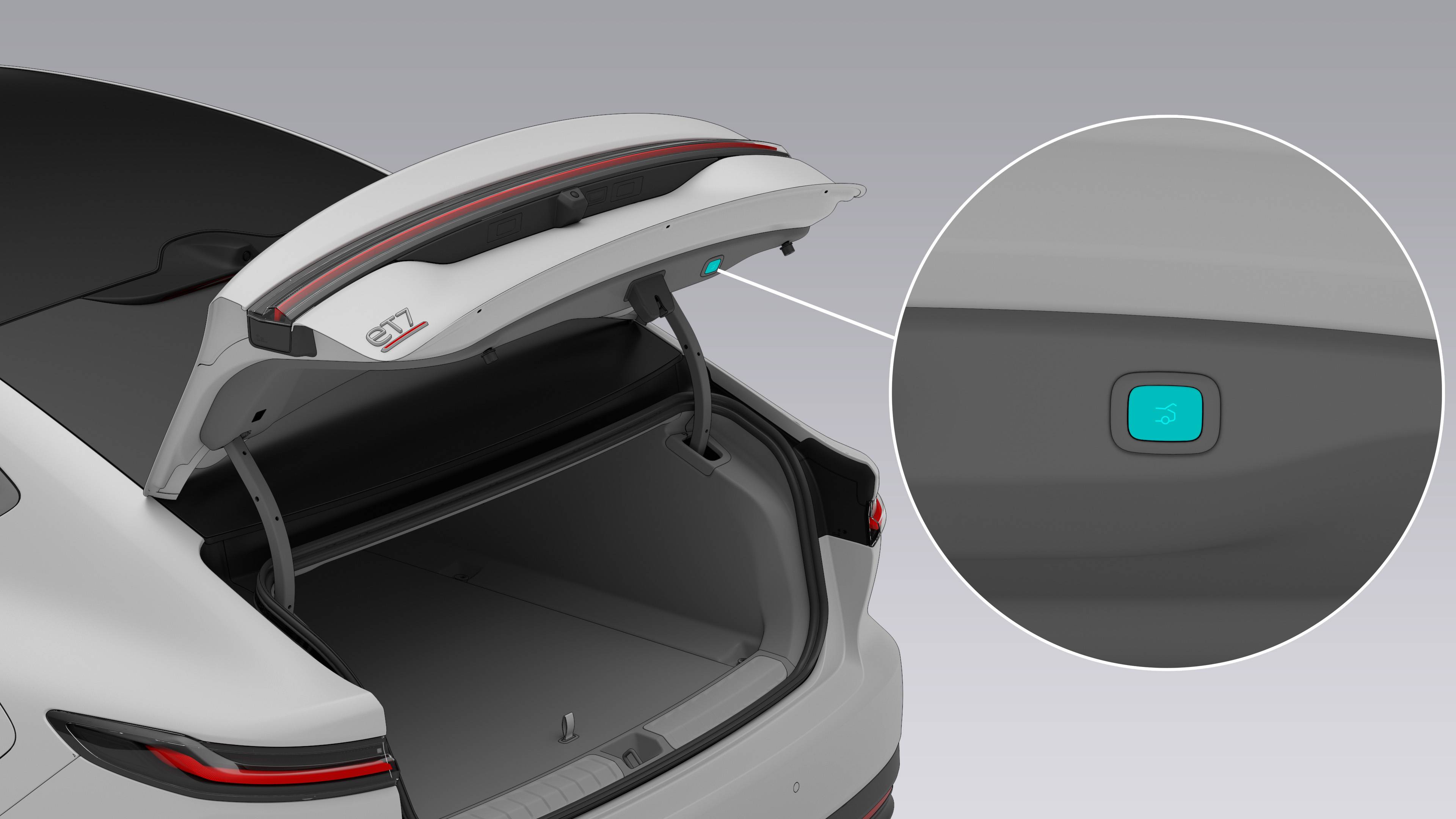 Sie können den Kofferraumschalter drücken oder die Seite „Mein Fahrzeug“ in der NIO-App aufrufen, um den Kofferraum zu öffnen/schließen.