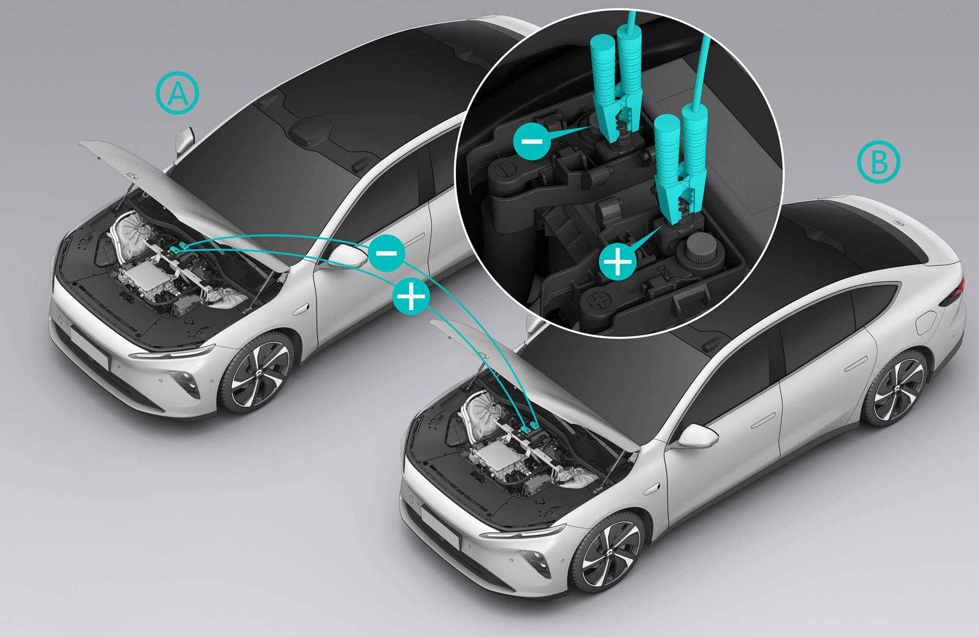 Für die Initiierung einer externen Stromquelle mithilfe des Starthilfekabels gelten Mindestspannungsanforderungen. Zur Vermeidung von Schäden bei einer entladenen Batterie wenden Sie sich bitte an das NIO-Servicecenter.
