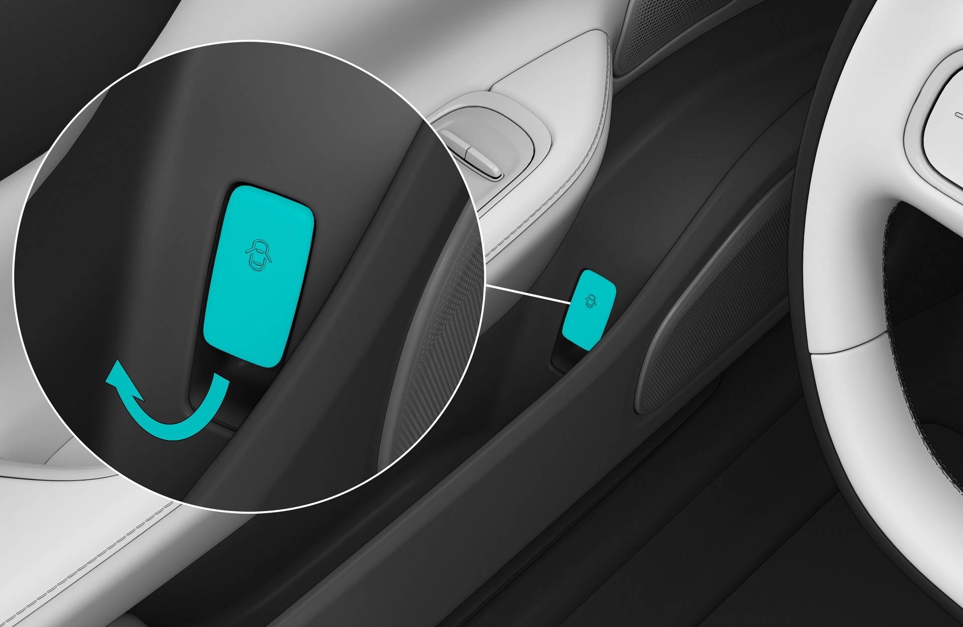 Wenn das gesamte Fahrzeug verriegelt ist und die Tür im Notfall geöffnet werden muss (z. B. wenn der elektronische Schalter am Türgriff versagt oder das Fahrzeug ins Wasser fällt), ziehen Sie einmal am mechanischen Schalter am Türinnengriff, um die entsprechende Tür zu öffnen.
