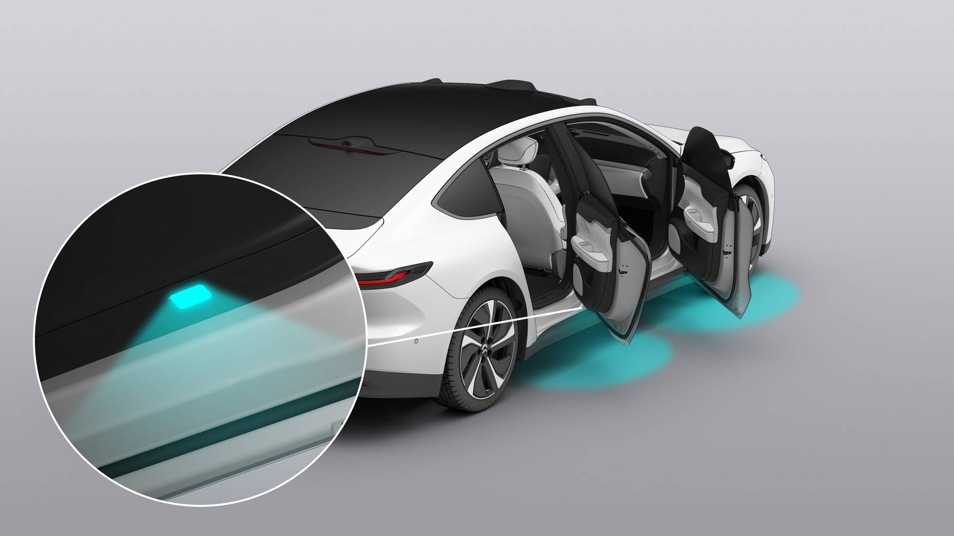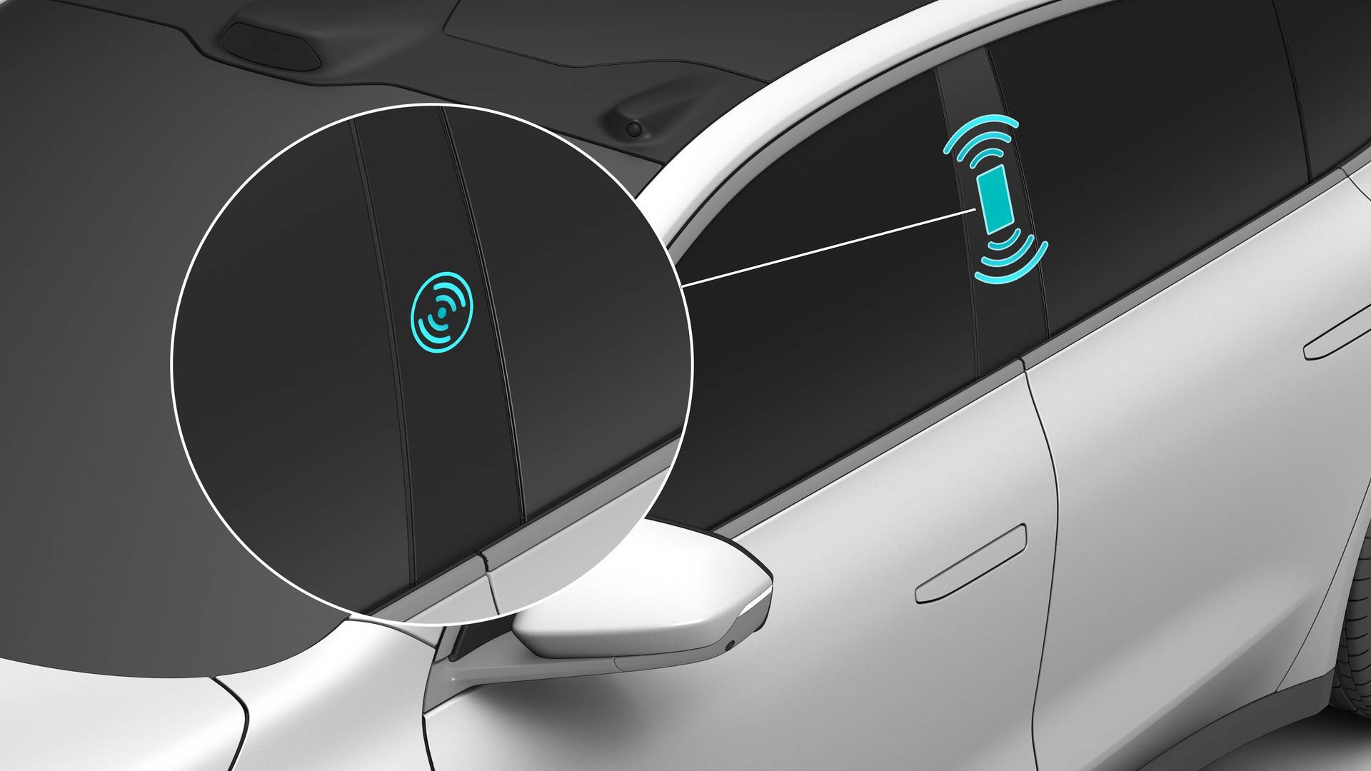Nach Aktivierung der Funktion Walk-Up-Entriegelung auf dem Center Display wird das Fahrzeug automatisch entriegelt, wenn Sie sich mit Ihrem Telefon in den angegebenen Bereich um das Fahrzeug begeben.
