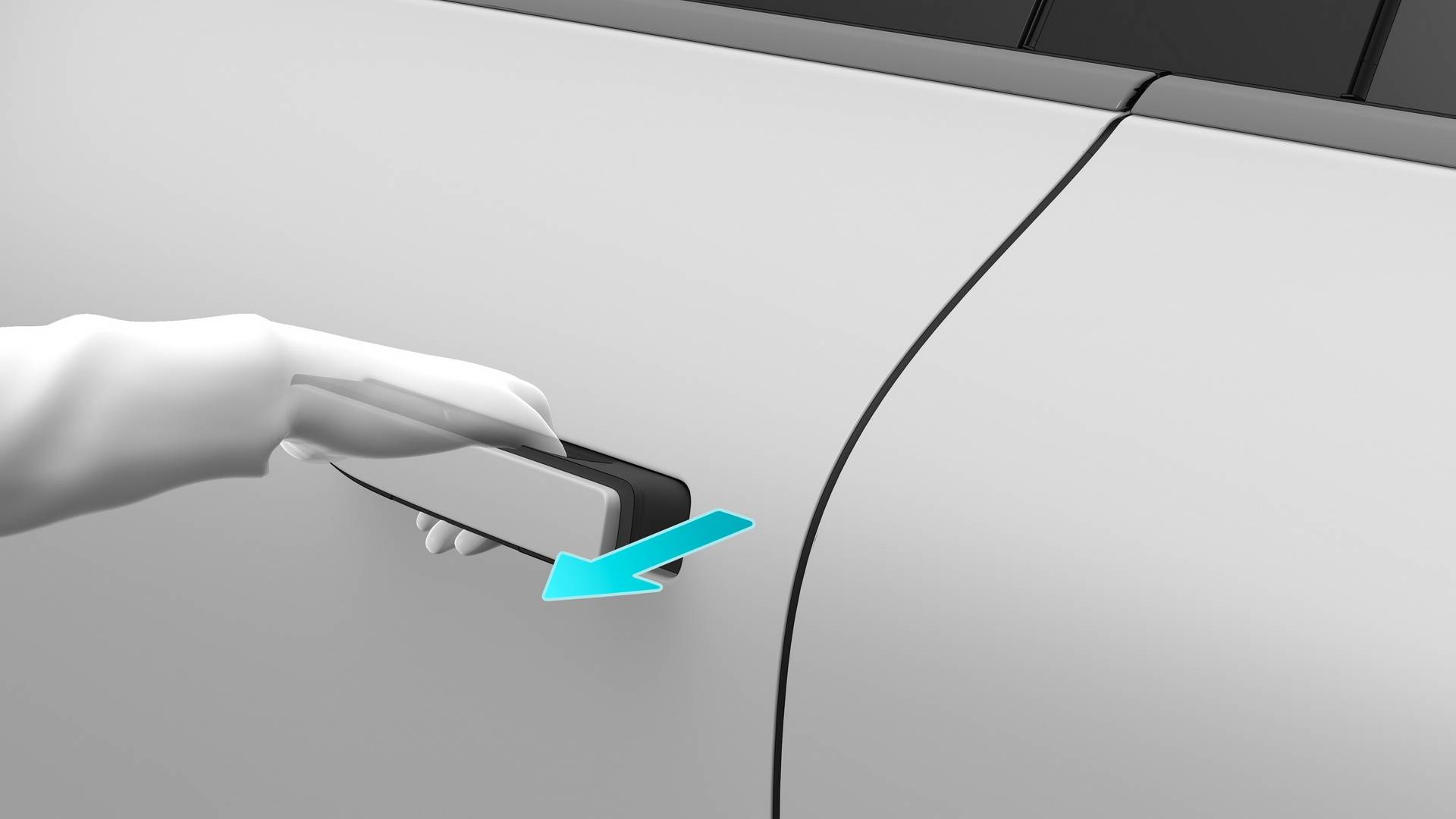 Wenn Sie einen authentifizierten Funkschlüssel oder ein Bluetooth-Gerät (in Ihrer Tasche) bei sich tragen, können Sie das Fahrzeug ent- oder verriegeln, indem Sie einfach das hintere Ende eines beliebigen äußeren Türgriffs berühren.