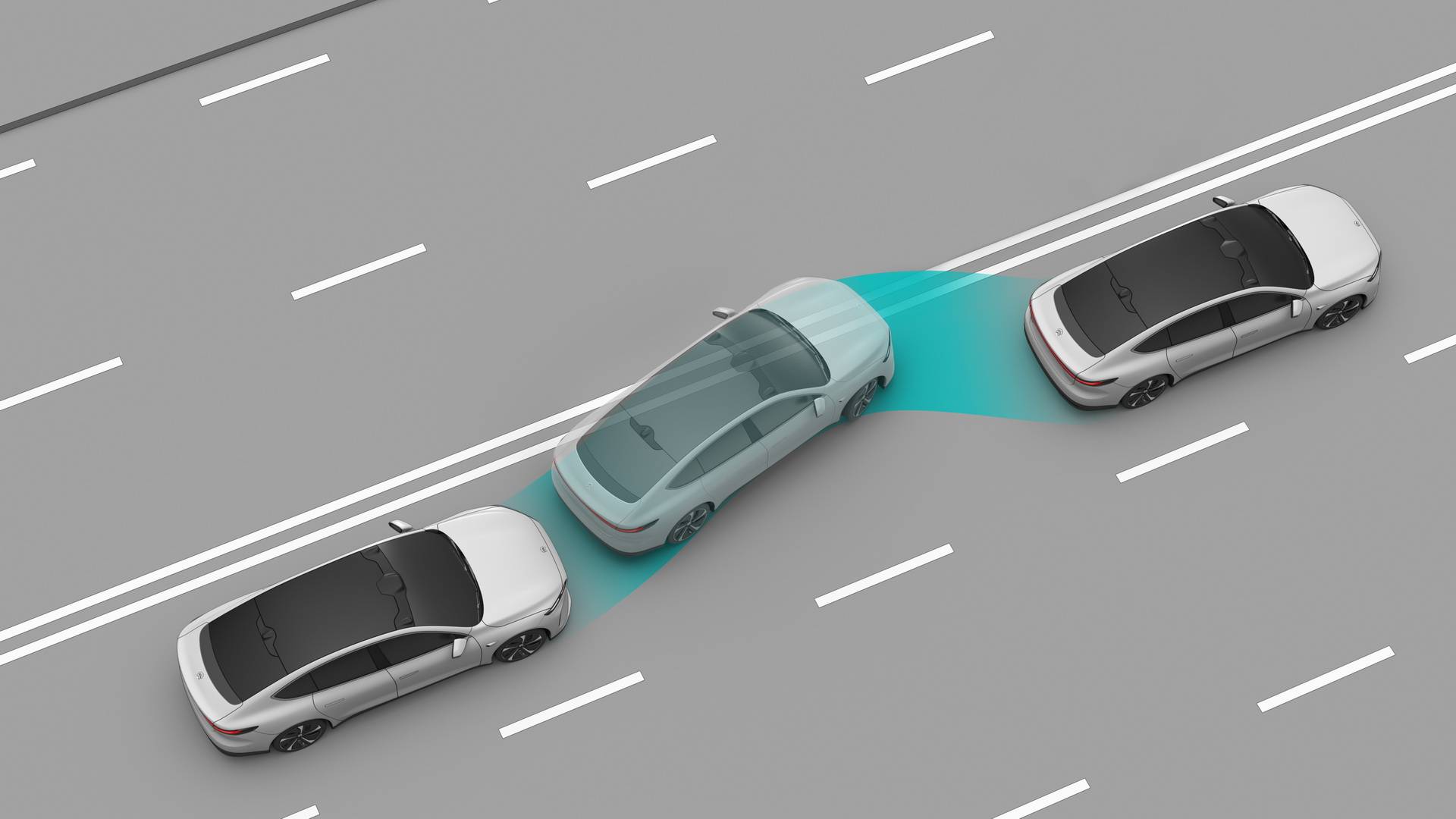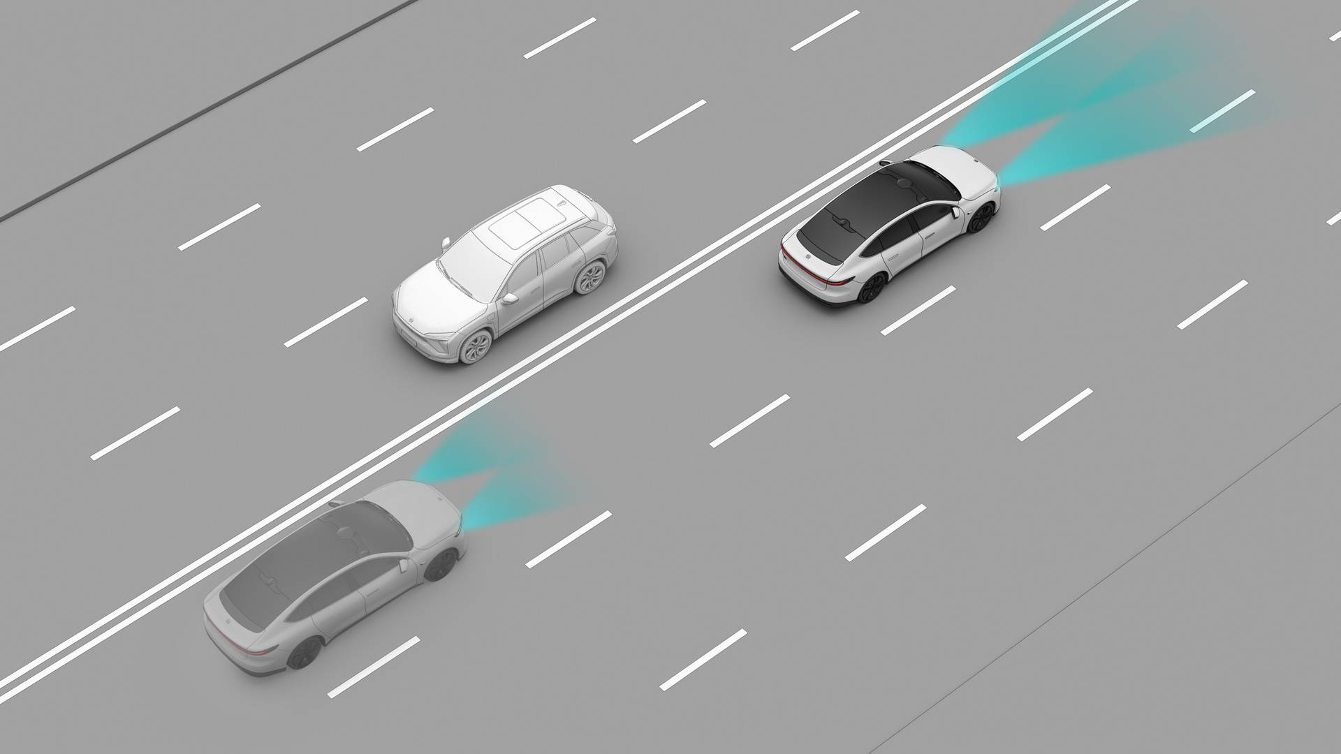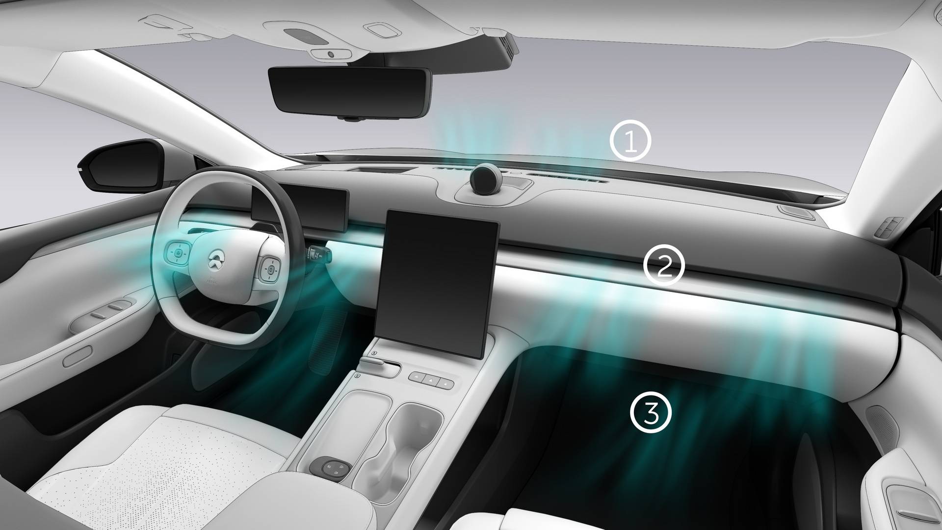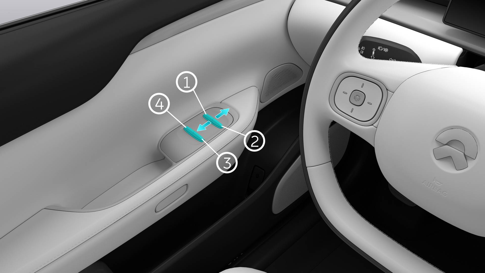 Um das Verriegeln des geparkten Fahrzeugs zu vereinfachen, können Sie über die Bedienleiste unten im Center-Display die Einstellungen öffnen und auf Tür- und Fensterverriegelung > Fenster > Fenster beim Verriegeln automatisch schließen tippen, sodass beim Verriegeln des Fahrzeugs von außen (mit intelligentem Schlüssel, NFC, NIO-App, schlüssellosem Entriegeln und automatischem Entriegeln beim Verlassen des Fahrzeugs) automatisch alle Fenster geschlossen werden. Die Schließbewegung hat eine Klemmschutzfunktion. Wenn die Ent-/Verriegelungstaste am intelligenten Schlüssel oder die entsprechende Schaltfläche in der NIO-App gedrückt wird, während die Fenster geschlossen werden, bleiben die Fenster in ihrer aktuellen Position stehen.