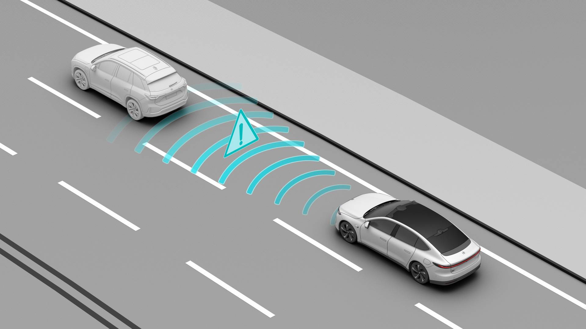 Wenn ein Insasse den Funkschlüssel oder das Telefon mit dem digitalen Bluetooth-Schlüssel versehentlich mehr als 3 Meter aus dem Fahrzeug herausnimmt, erinnert Sie das Fahrzeug daran, dass sich der Schlüssel außerhalb der Reichweite befindet.