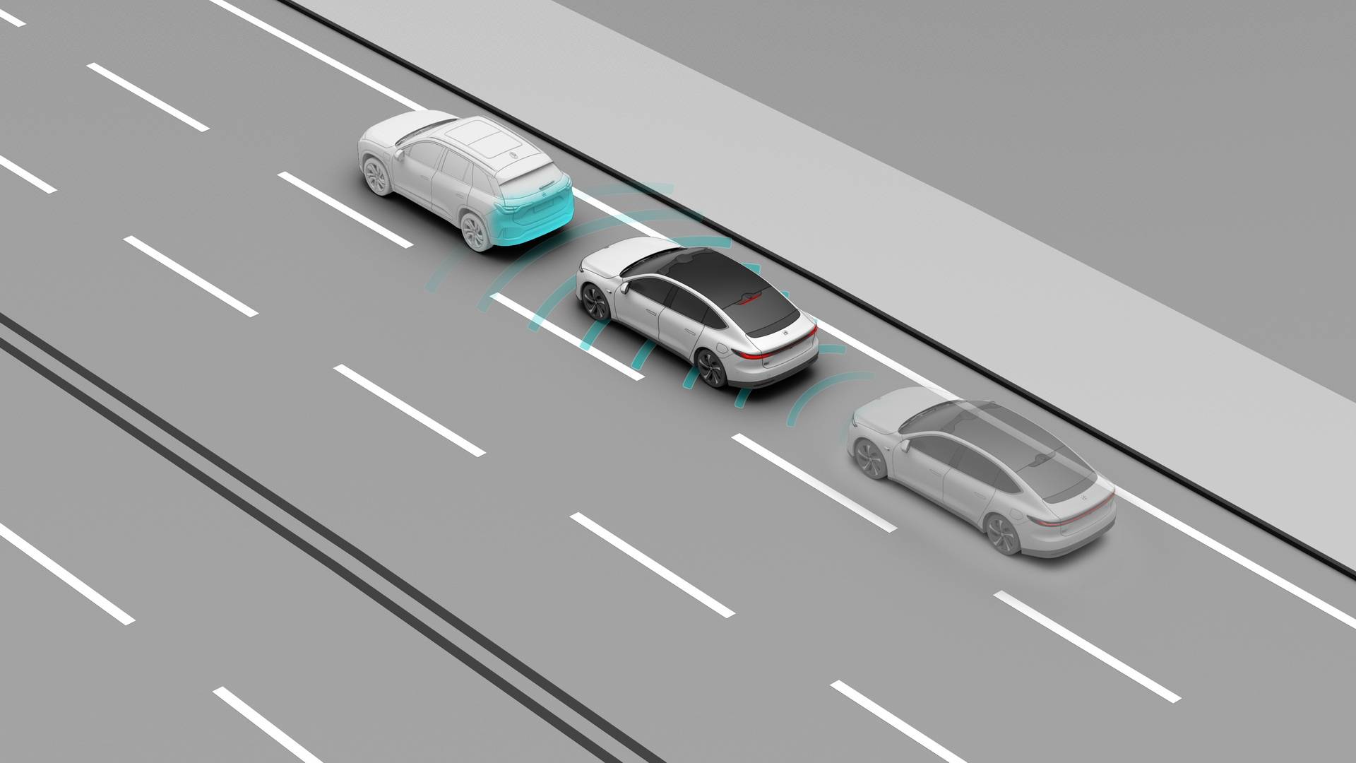 Nach Aktivierung der Funktion Walk-Away-Verriegelung auf dem Center Display wird das Fahrzeug automatisch verriegelt, wenn Sie das Fahrzeug für die angegebene Distanz mit Ihrem Telefon verlassen.