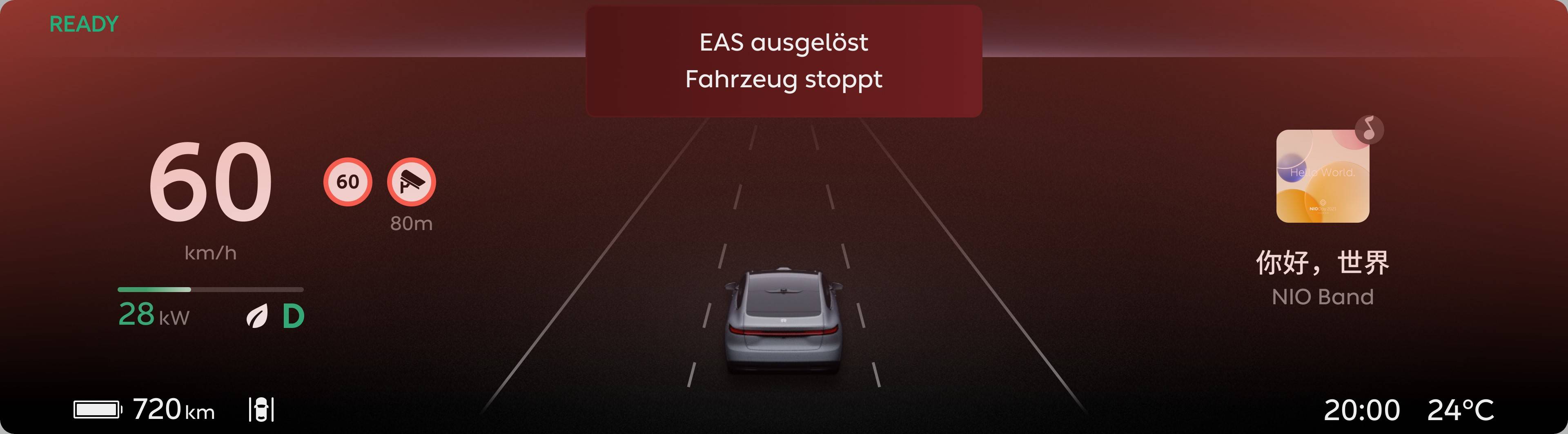 Wenn im Center-Display des Fahrzeugs eine Warnung zu einer Fahrzeug- oder Batterie-Funktionsstörung erscheint, stellen Sie das Fahrzeug bitte sicher ab, verlassen Sie es umgehend und begeben Sie sich zu Ihrem eigenen Schutz in einen sicheren Bereich.